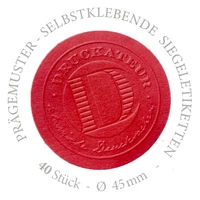 40 hochwertige runde, nassklebende (wie Briefmarken) Siegeletiketten in der Farbe rot für Urkunden, zum Veredeln von Briefumschlägen, Karten oder zum Dekorieren von Geschenken - Durchmesser 45 mm.