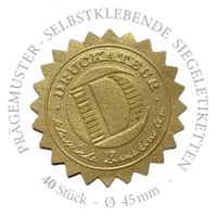 40 hochwertige gezackte runde, nassklebende (wie Briefmarken) Siegeletiketten in der Farbe gold für Urkunden, zum Veredeln von Briefumschlägen, Karten oder zum Dekorieren von Geschenken - Durchmesser 45 mm.